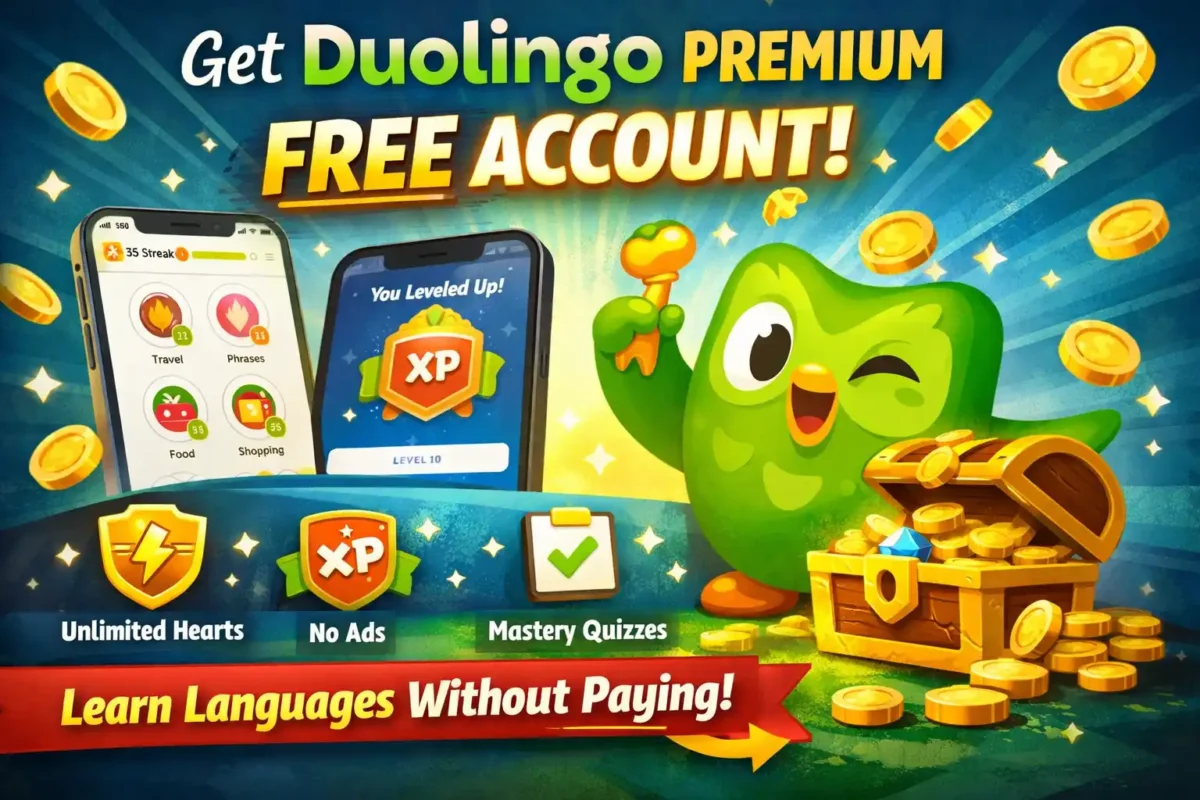 One of the biggest advantages of Duolingo is its accessibility—you can learn anytime, anywhere using your mobile or desktop. While the free version provides a solid learning experience, the premium plan unlocks additional features for a smoother and more focused journey. Overall, Duolingo is a great choice for anyone looking to learn a new language in a flexible and enjoyable way. In this article we will let you how you can get a duolingo premium account for free and do the duolingo test for free.